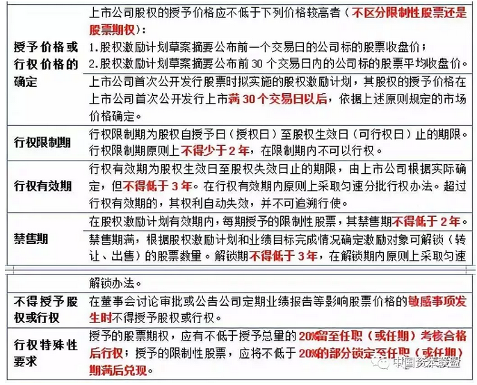 根据《上市公司股权激励管理办法》,上市公司股权激励法规要求基本如下: