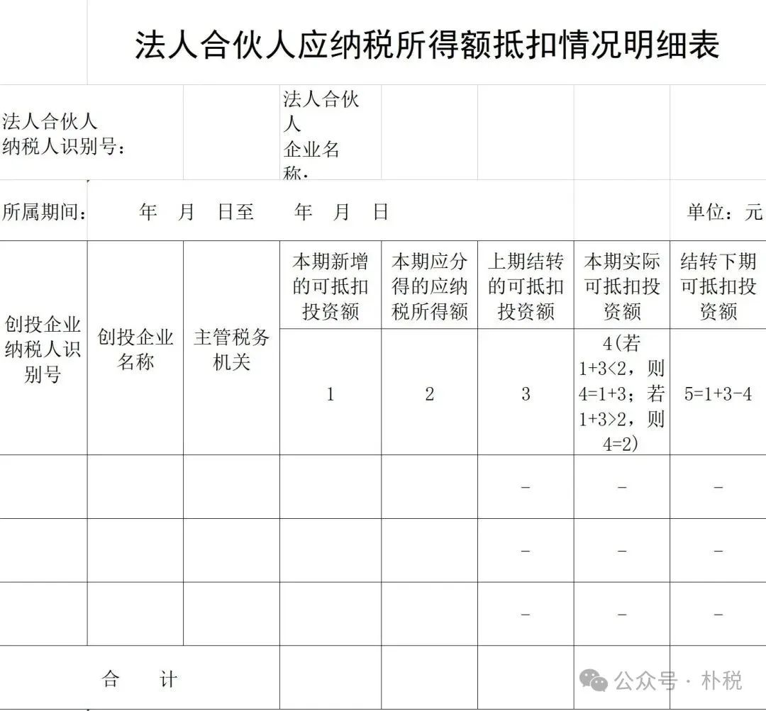 5.法人合伙人应纳税所得额抵扣情况明细表;